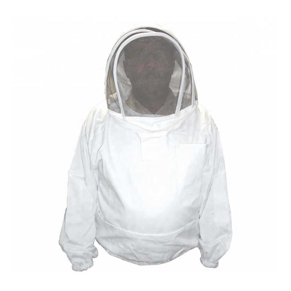 *Beekeeping Jacket in white Color With Normal Ventilated Fancy Hood (removable Hood) Strong and excellent quality material will last for years High quality Zip Even in the rain, this Jacket maintains a protective barrier against bees.