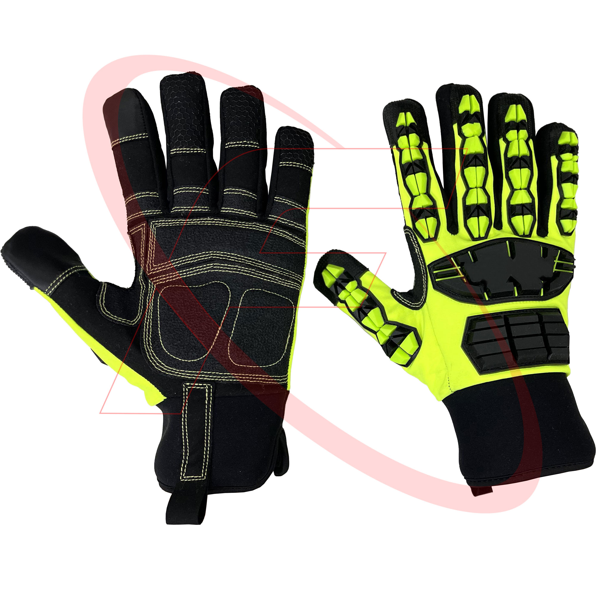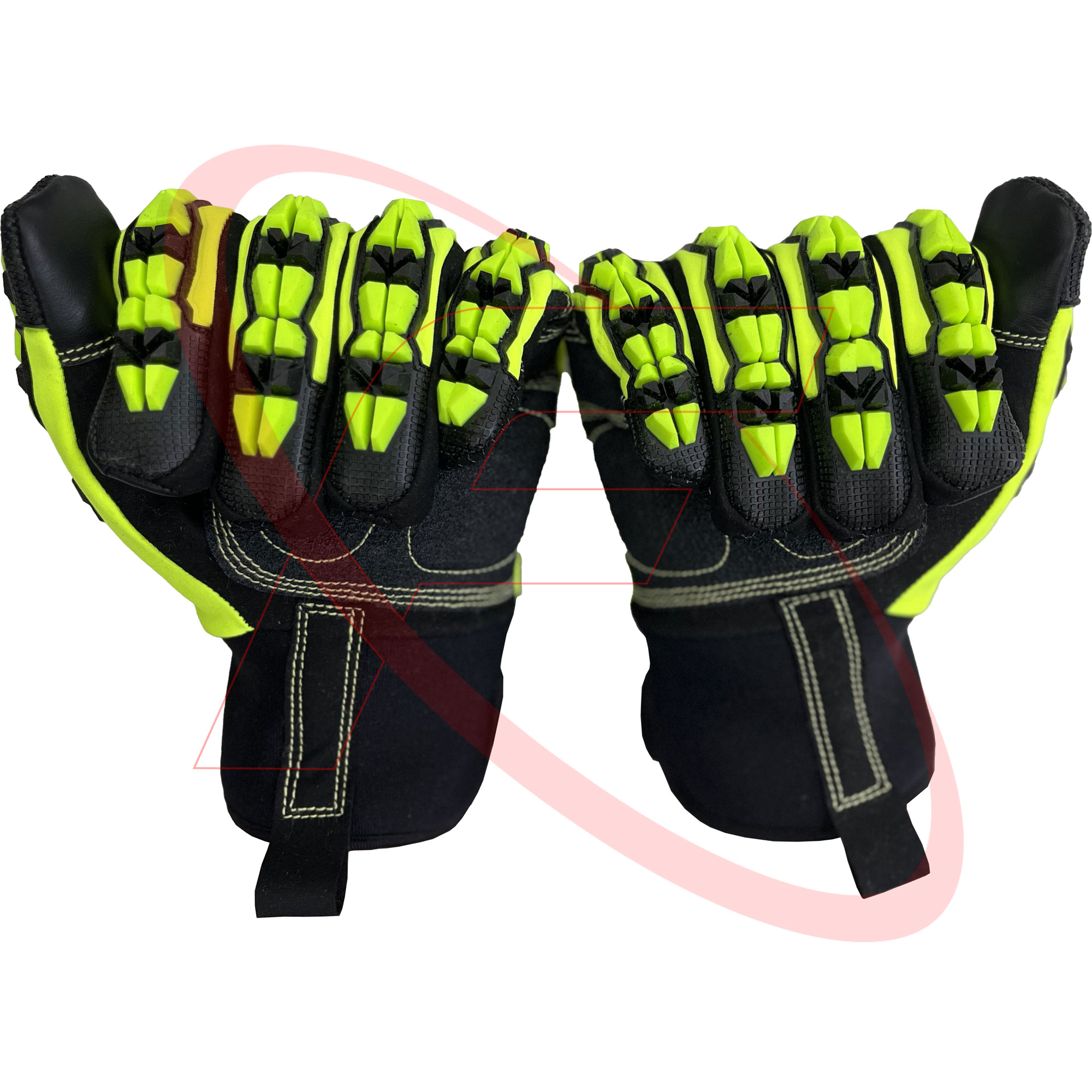 • Back of Gloves in TPR (Thermoplastic Rubber) injected on High Visibility Lime Green Spandex Fabric