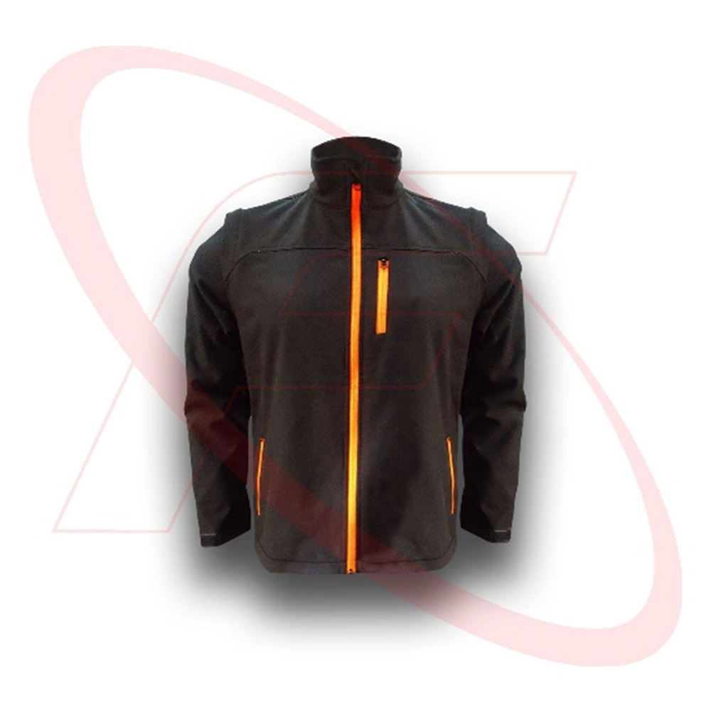 Reverse Concealed Water Proof Contrast Red or Orange Zippers at front.